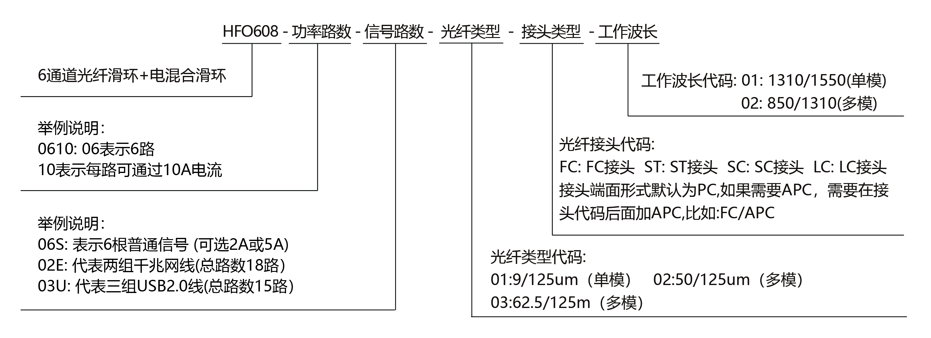 | HFO608 - 6路光+電滑環(huán)選型表 | |||||||||